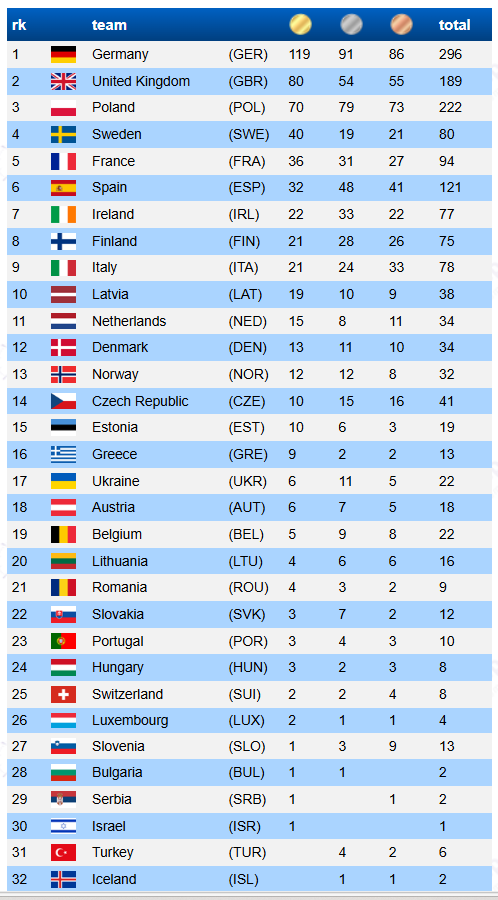 Am Ende noch ein Blick auf die 3 ersten Plätze des Medaillenspiegels: